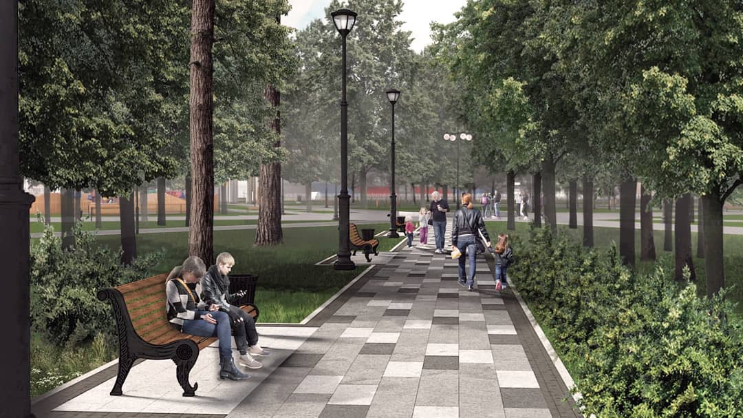 На аллеях появятся чугунные лавки дизайна 30-х годов, фонари классических форм. Вход со стороны проспекта Музрукова приобретет исторический вид и создаст единый ансамбль с входной группой на территорию стадиона «Икар».
