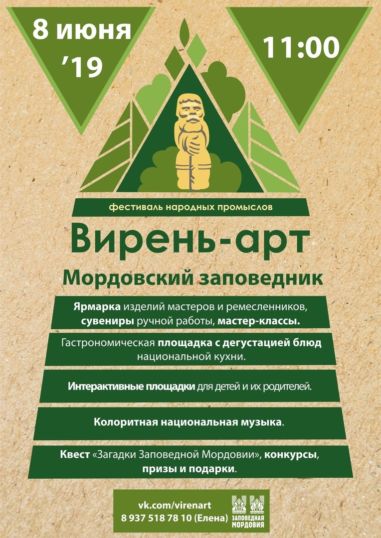 8 июня 2019 года в Мордовском заповеднике (Темниковский район, пос. Пушта) состоится Первый фестиваль народных промыслов «Вирень-арт». Вход свободный! Организатором Фестиваля является ФГБУ «Заповедная Мордовия».