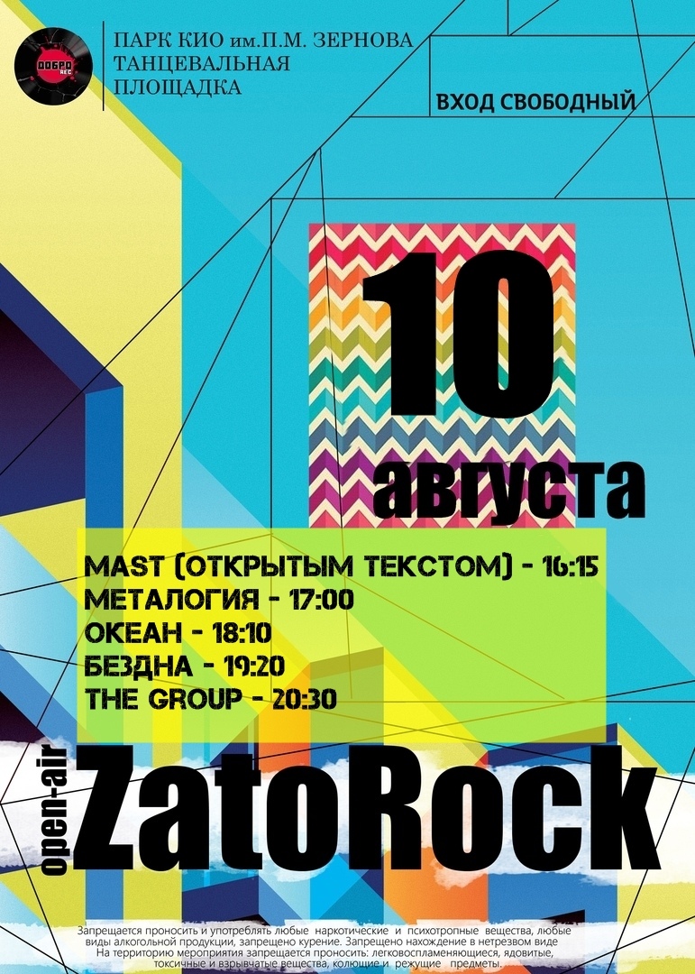 Городской рок-фестиваль ZatoRock пройдет в парке Зернова 10 августа