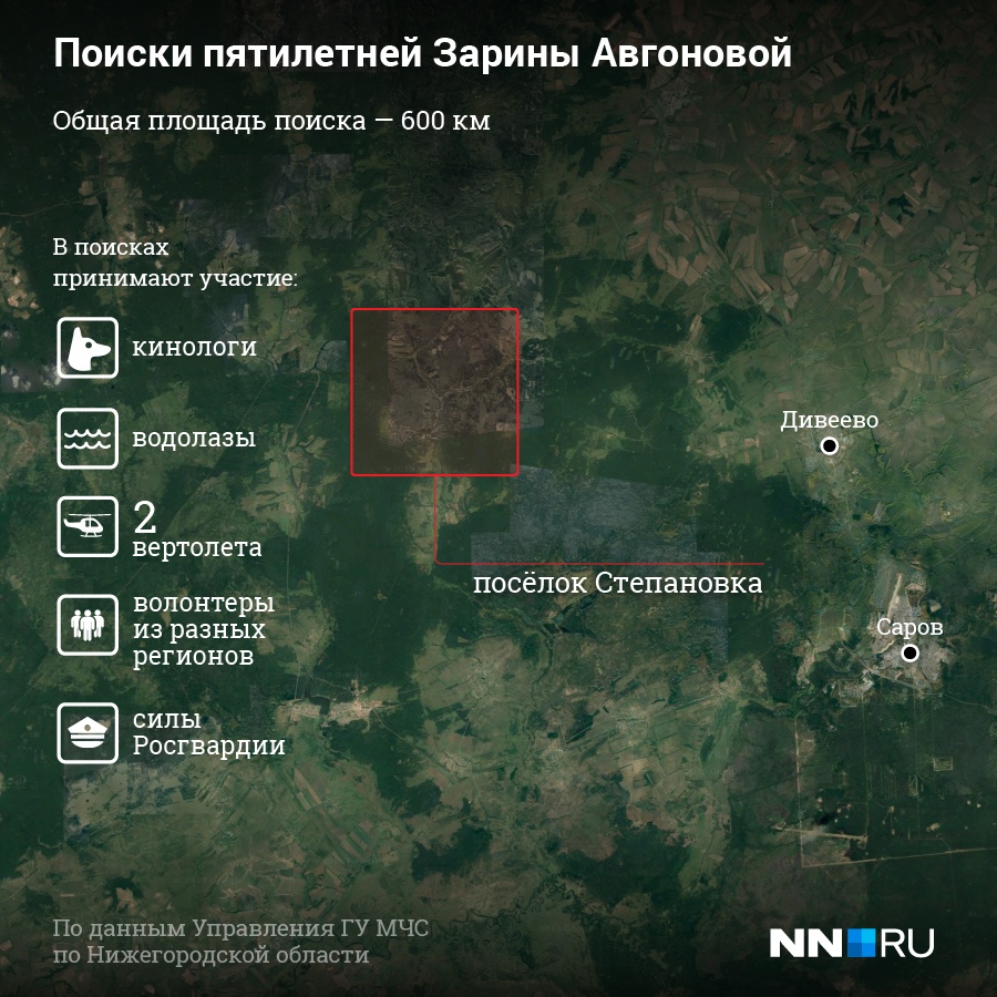 Поиски 5-летней Зарины под Вознесенском продолжаются. Вчера в поисках участвовало около 1000 человек: спасатели, росгвардия, поисковики, кинологи и волонтёры. К сожалению, без результатов.