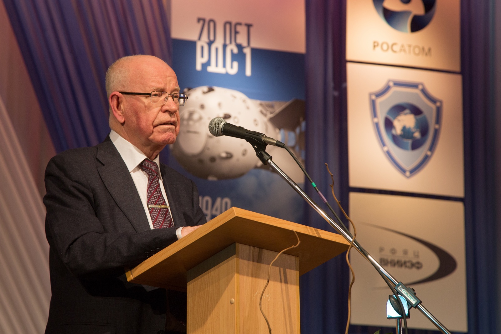 Научный руководитель РФЯЦ-ВНИИЭФ Вячеслав Соловьев выступил с докладом об истории создания и испытания РДС-1. «Создание РДС-1 явилось результатом героического труда сотен тысяч ученых, инженеров, конструкторов, рабочих, которые реализовывали атомный проект в условиях послевоенной разрухи. Успешное испытание РДС-1 ликвидировало ядерную монополию США и заложило основы для предотвращения ядерной войны и обеспечения мирной жизни нашего народа», — отметил докладчик.