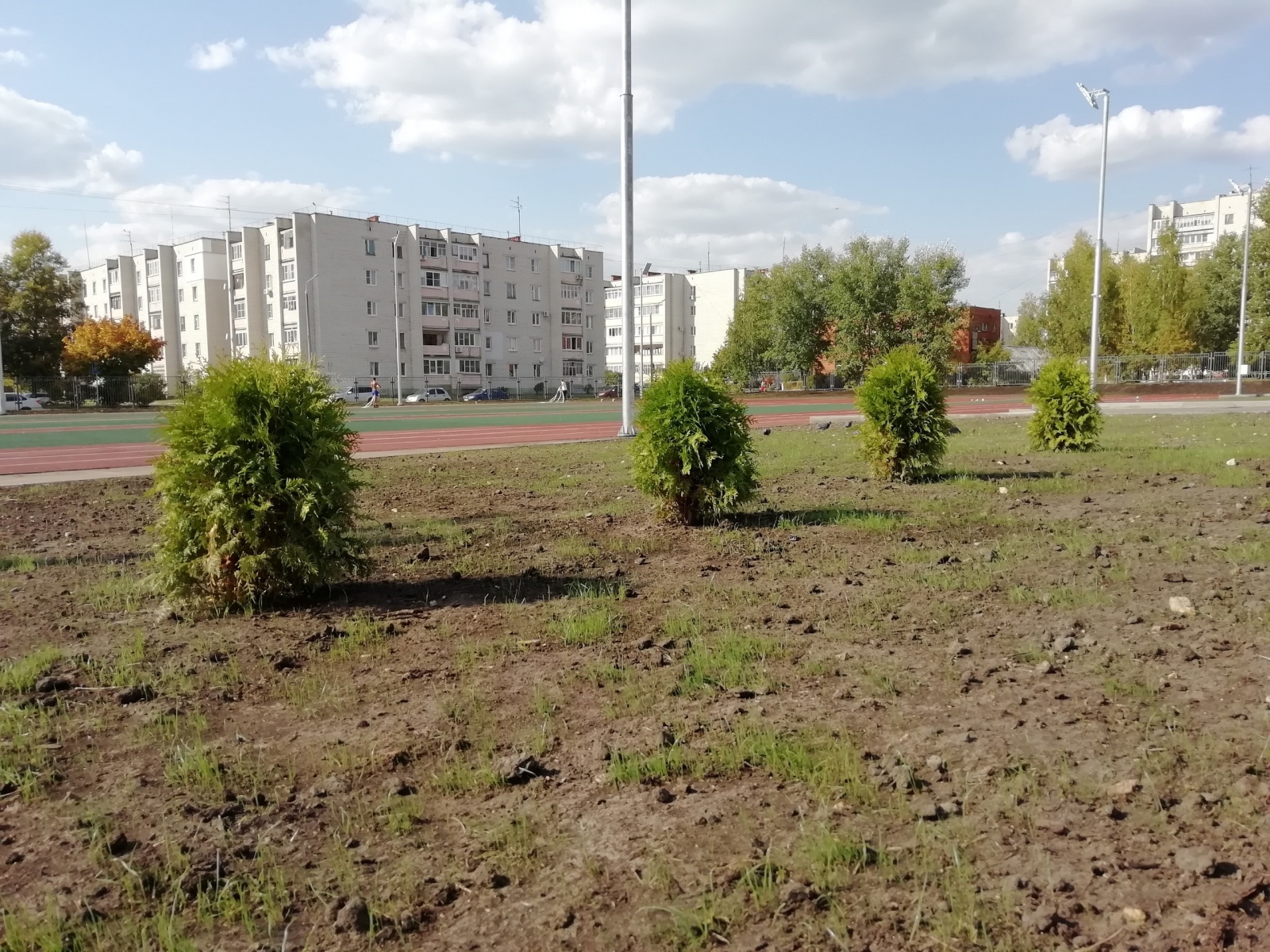 На стадион между 14 и 16 школами ставят лавки, урны, производят озеленение (фото)