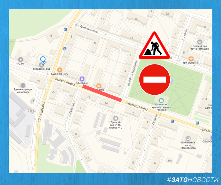 Причина перекрытия — ремонт теплосетей вдоль домов № 14 и № 16.