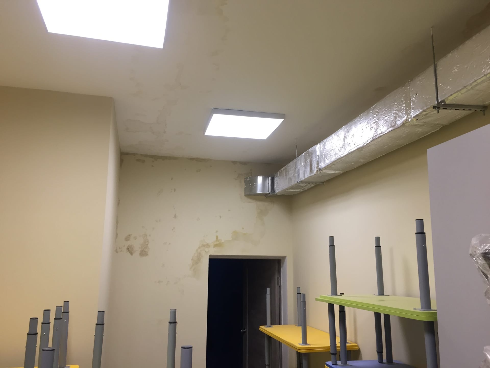 Накаркали. В детском саду № 44 обнаружена протечка кровли, появившаяся в одном из негрупповых помещений уже после завершения капремонта.