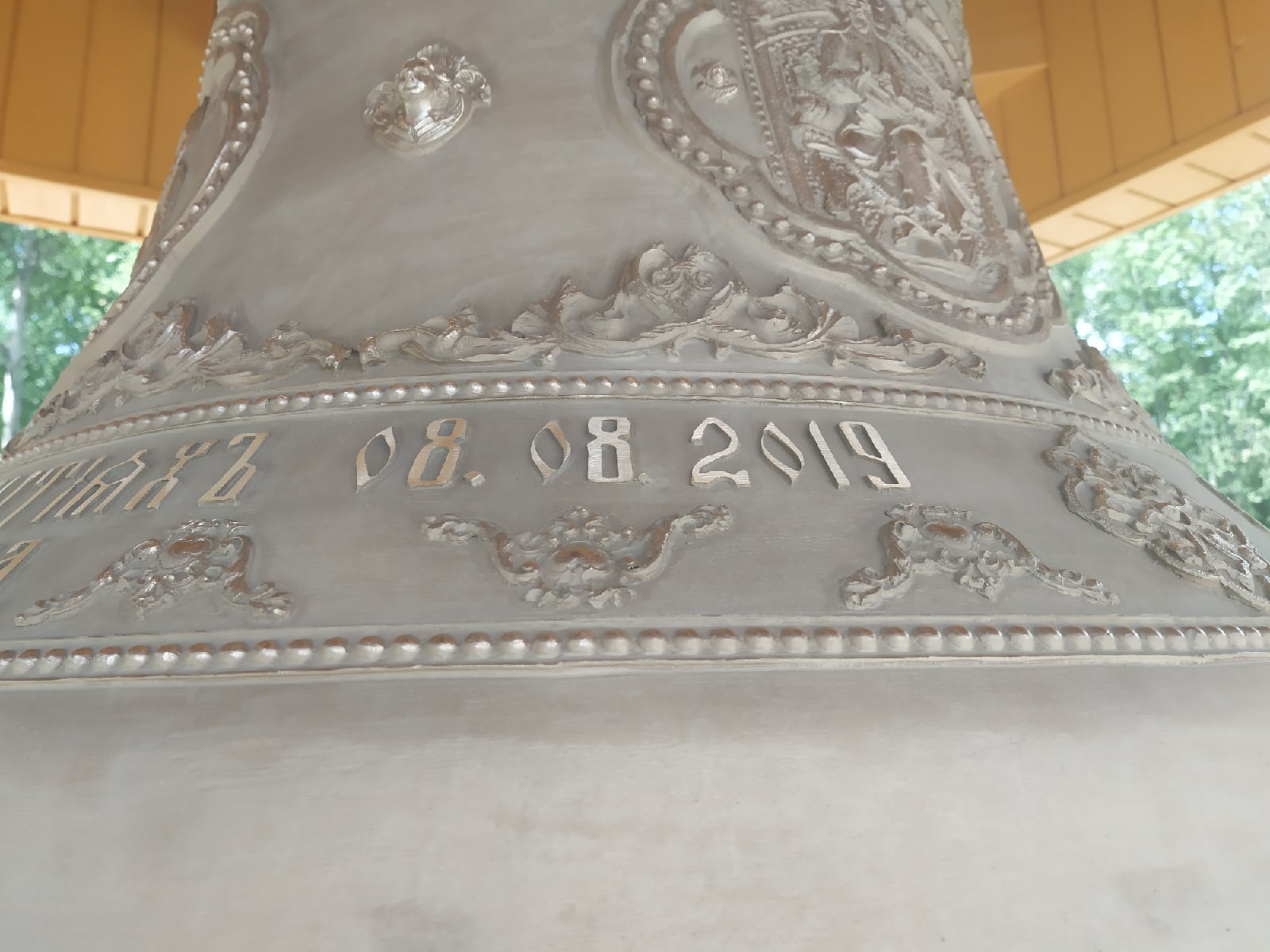 Надпись на нижнем поясе колокола: «СЛИТЪ СЕЙ КОЛОКОЛЪ ЛѢТА 2020 ОТЪ Р.Х. ВЪ ПАМЯТЬ О ТРАГИЧЕСКИХЪ СОБЫТІЯХЪ