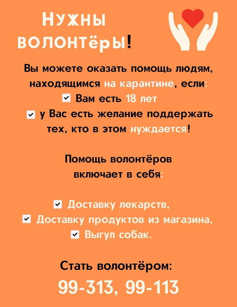 Объявлен набор в волонтёры для помощи изолированным на карантин