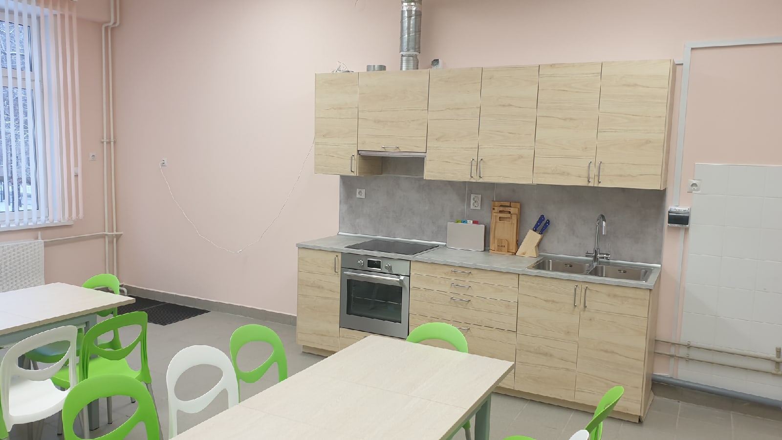 — Кабинеты технологии с индивидуальными станками и кухней для девочек.