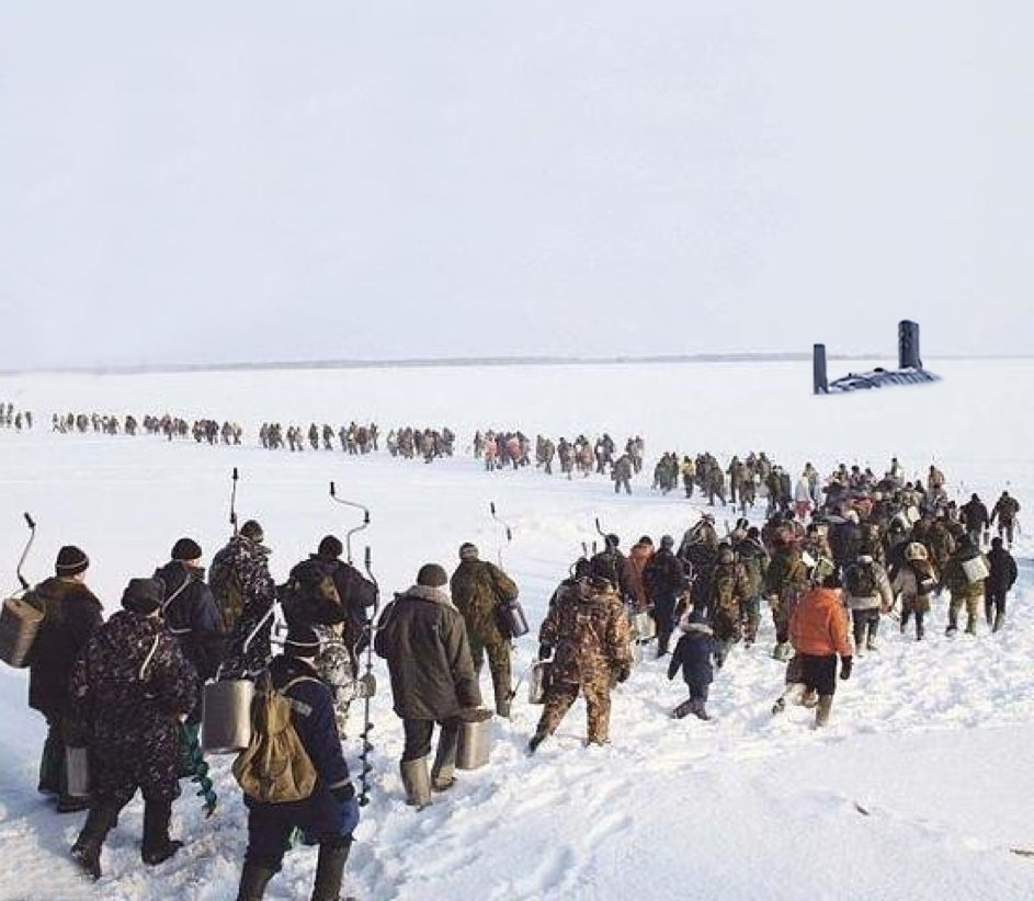 Не, просто на идиотов вынырнула позырить! Куда нах такой толпой попёрлись? В магазине рыбы не хватает? |