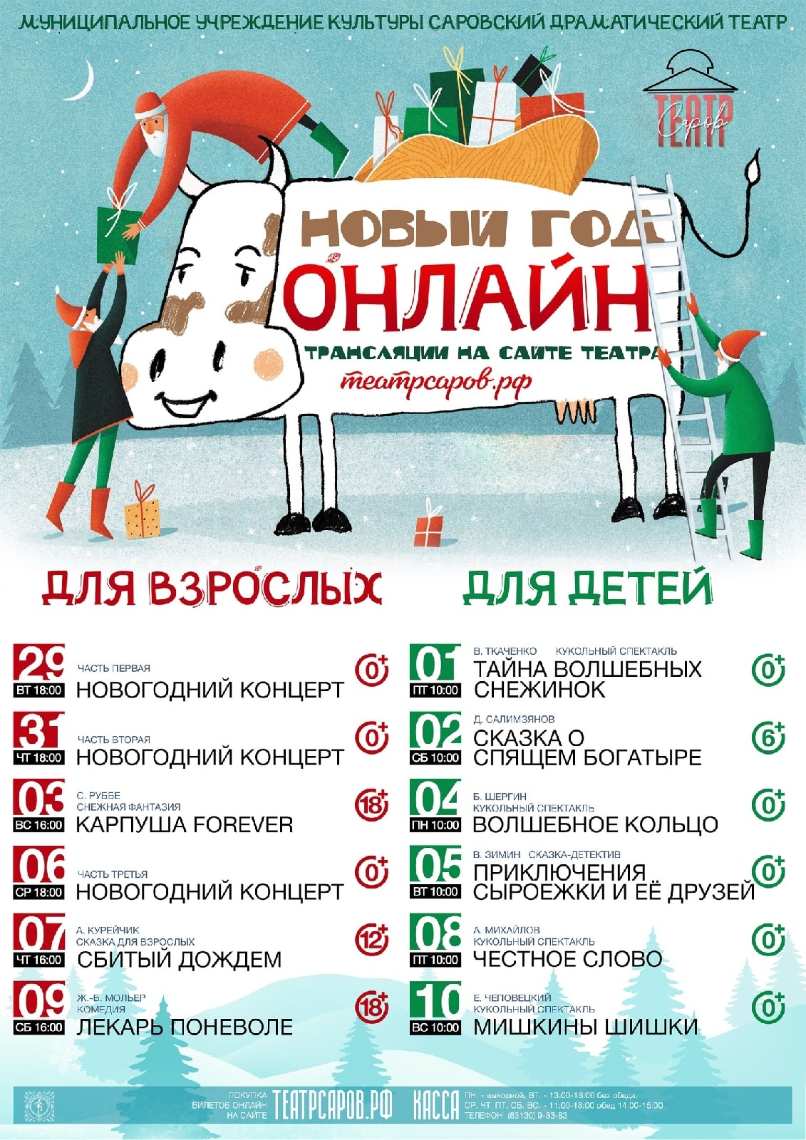 Спектакли саровского драмтеатра будут транслироваться он-лайн в течение всех новогодних праздников.