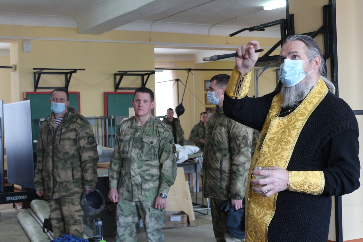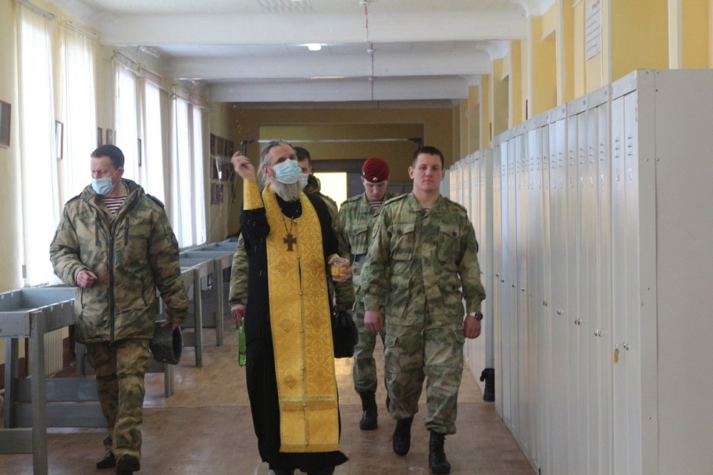 На прошлой неделе прошли молебны и окропление освященной водой казарм и других помещений, где находятся саровские военнослужащие.