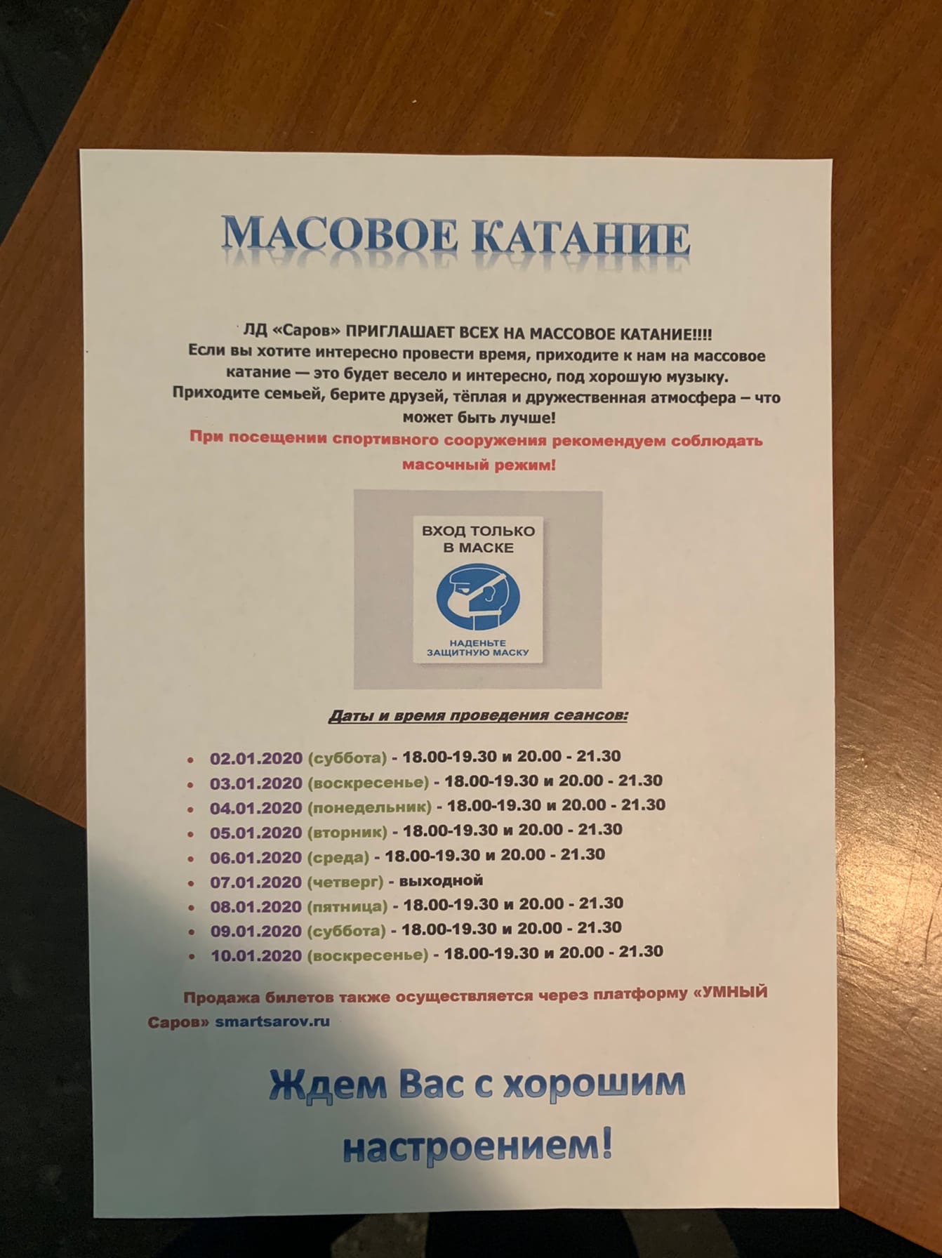 "Лёд будет доступен со 2 февраля все дни новогодних каникул".