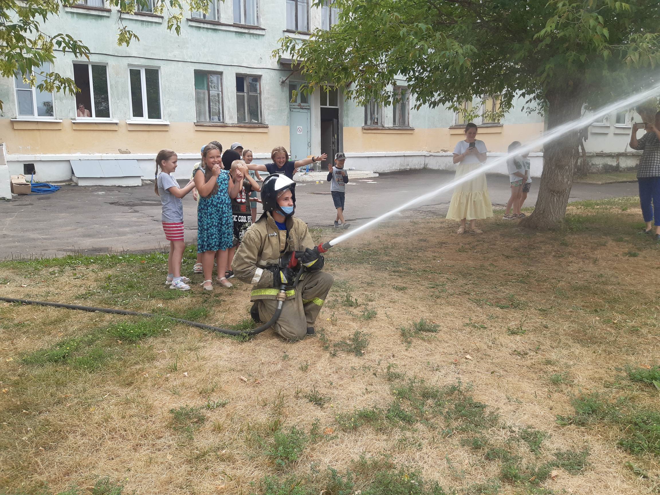 Школьникам показали боевое снаряжение пожарных, а также пожарно-техническое вооружение. Ребята с огромным интересом попробовали себя в роли настоящего пожарного, подавая воду из пожарного ствола.