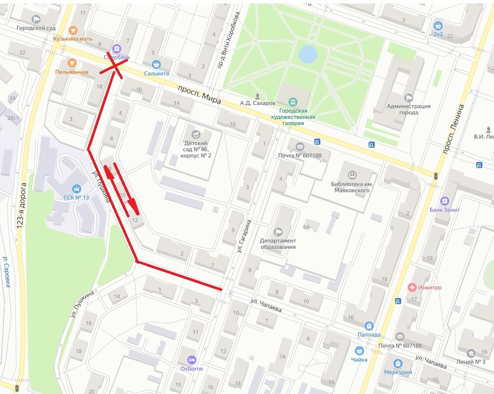 Департамент городского хозяйства сообщает, что до 30 сентября в связи с прокладкой подземных коммуникаций закрыт выезд на проспект Мира с улицы Пушкина, введено двустороннее движение по улице Чапаева на участке от пересечения с улицей Гагарина до пересечения с улицей Пушкина и далее по улице Пушкина до пересечения с проспектом Мира.