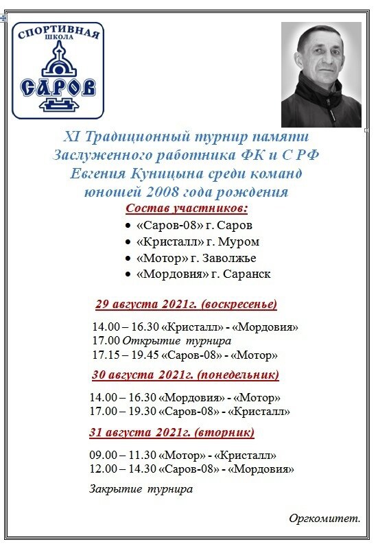 В конце августа пройдёт турнир по хоккею памяти Е. Куницына