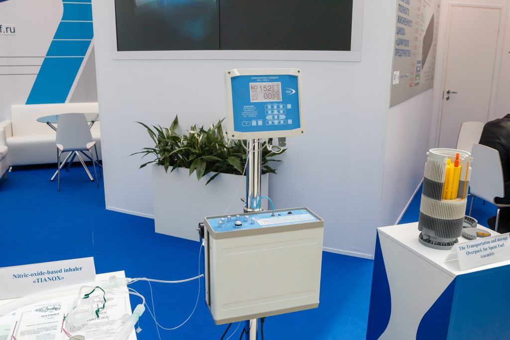 На стенде «Диверсификация ОПК» демонстрируется уникальный аппарат для ингаляционной терапии оксидом азота «Тианокс». Разработка ВНИИЭФ защищена 4 патентами Российской Федерации. Аппарат уже прошел необходимые испытания и зарегистрирован в Перечне медицинских изделий Российской Федерации.