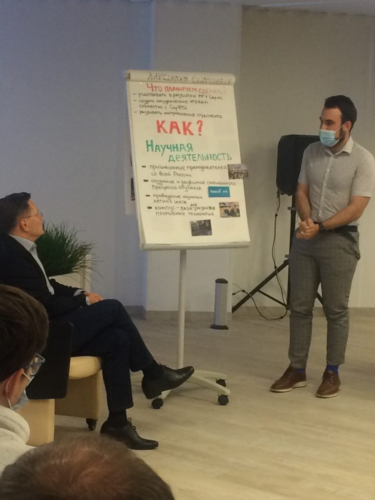 Студсовет представил Алексею Евгеньевичу своё представление о том, что можно сделать для того, чтобы Филиал и Национальный центр физики и математики стал более притягательным местом — центром общественной мысли. Алексей Евгеньевич отметил, что здесь еще предстоит большое строительство, но безусловно, Госкорпорация Росатом будет помогать вливаться в научное сообщество. Для этого уже сверстан план встреч с учеными госкорпорации, а среди них — много очень интересных и серьезных ученых.