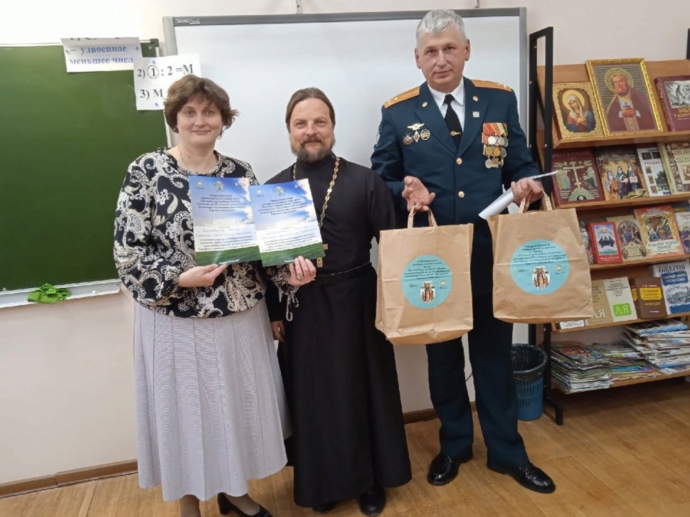 Также гости из Кадома наградили призеров открытого конкурса творческих работ, посвященного служению преподобных Германа Аляскинского, Серафима Саровского и Назария Валаамского, проводимого при поддержке Министерства по делам территорий и информационной политике Рязанской области в рамках реализации межрегионального духовно-просветительского проекта «По стопам преподобного Германа» с использованием гранта Президента Российской Федерации.