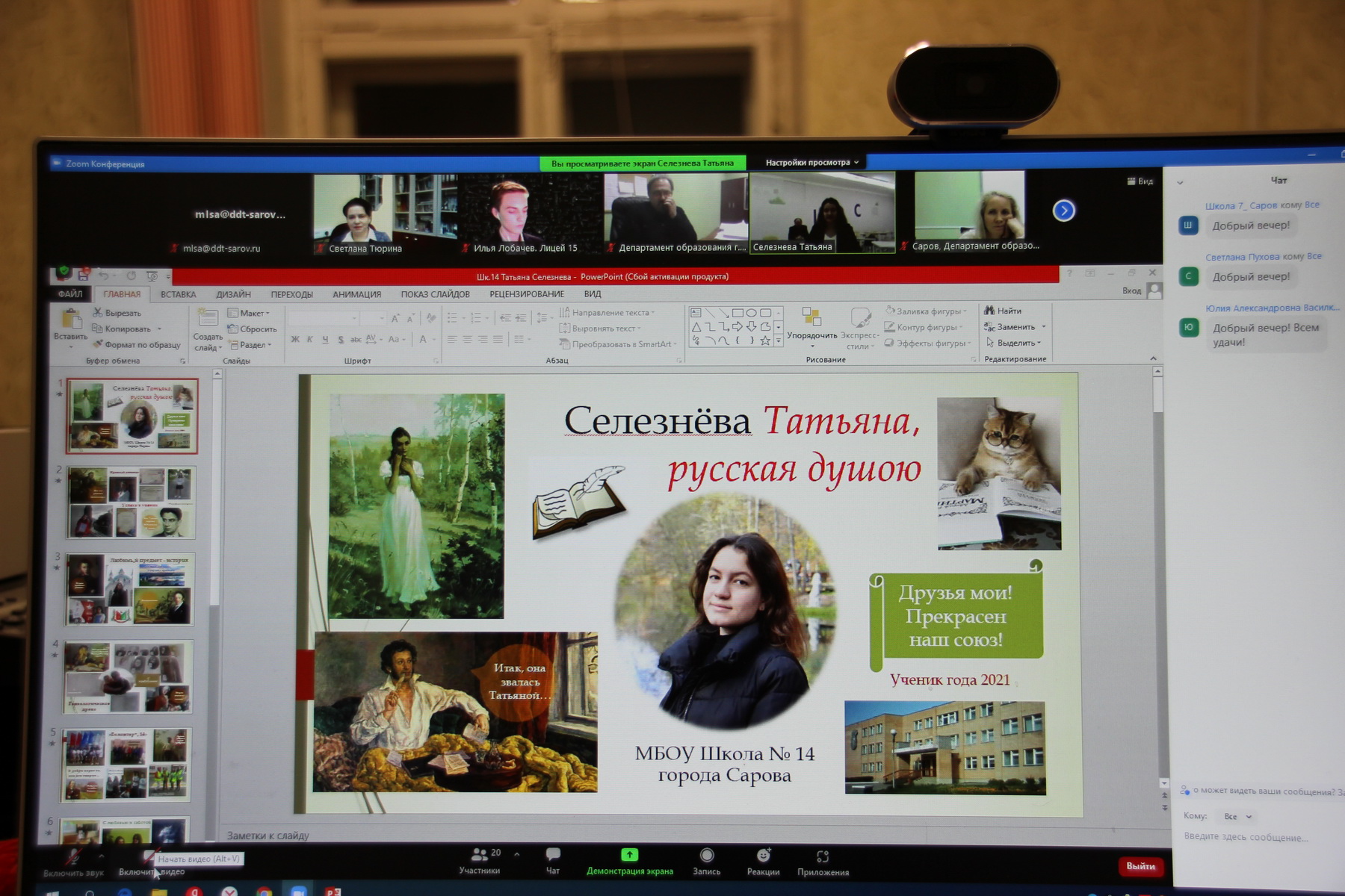 Финалисты 2021 года — четыре одиннадцатиклассника и один девятиклассник. Это альфа-звезда гимназии № 2, умница-журналист Елизавета Юдакина, творческий историк-волонтер из школы № 14 Татьяна Селезнёва, гиперответственный физик-эколог-исследователь из лицея № 15 Илья Лобачев, рукодельница, талантливая певунья, мечтающая стать учителем, из школы № 20 Ксения Зубова и отличник-активист школы № 7 Валерий Краснов. Все они подготовили очень содержательные презентации, неплохо справились с трудными вопросами викторины и порадовали шикарными видеозарисовками о своих наставниках.