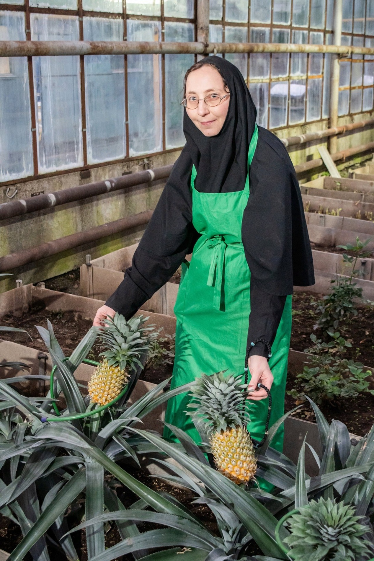 В монастырских теплицах выращиваются для монастыря огурцы, помидоры и цветы. Но сестры, которые трудятся в тепличном хозяйстве, пробуют выращивать в теплицах и что-то необычное, экзотическое — просто ради интереса.
