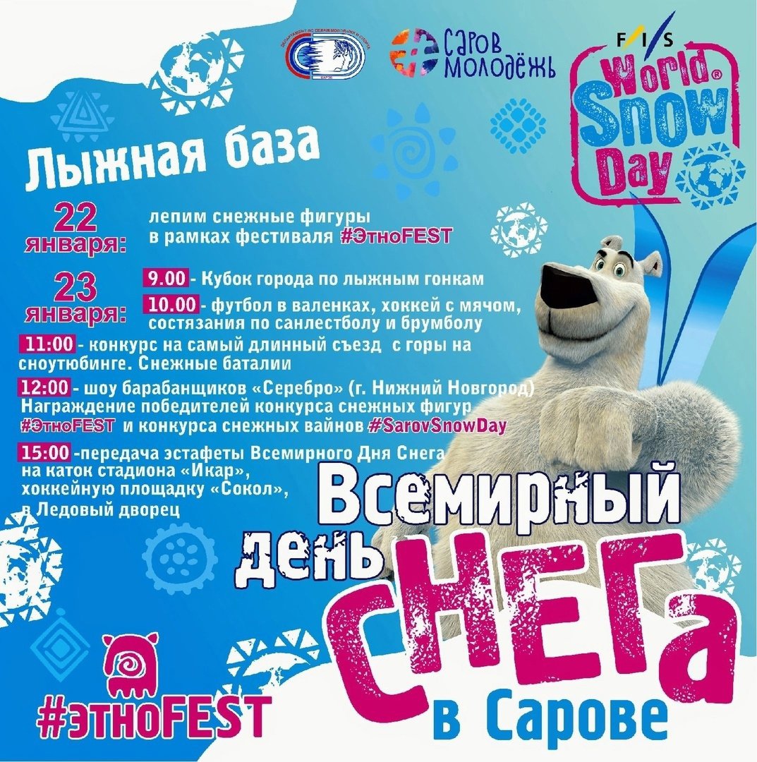 Также напоминаем, что до 20 января проходит конкурс снежных видеороликов #ЭтноFEST на те же темы. Видео нужно выложить в сеть с хештегами #SarovSnowDay и #ЭтноFEST.