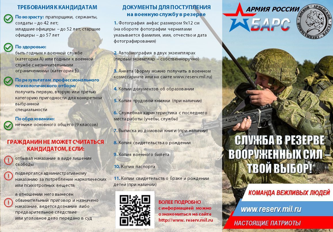 Гражданин, поступивший в резерв, должен соответствовать требованиям, предъявляемым к гражданам, поступающим на военную службу по контракту.