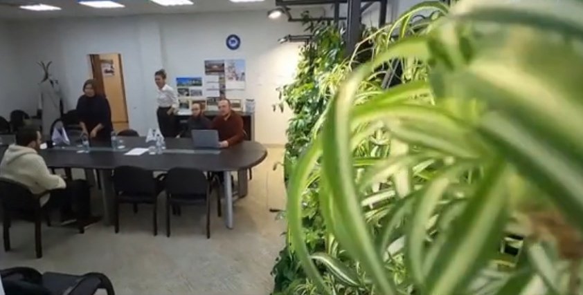 Быть знатоком растениеводства не нужно, фитостена сама ухаживает за собой. Прошел всего месяц, а уже первые цветы распустились. Новую систему установили в 11 зонах технопарка, в коридоре или вот, например, в кабинете бухгалтера. Здесь значительно теплее, 27 градусов, каждый из сотрудников сам выбирает комфортные для себя условия.