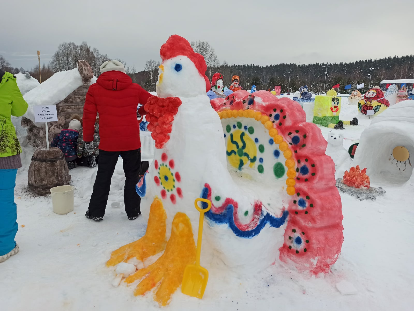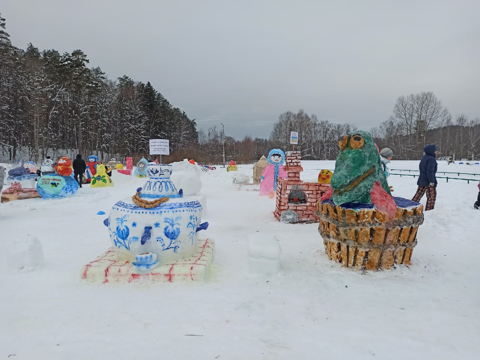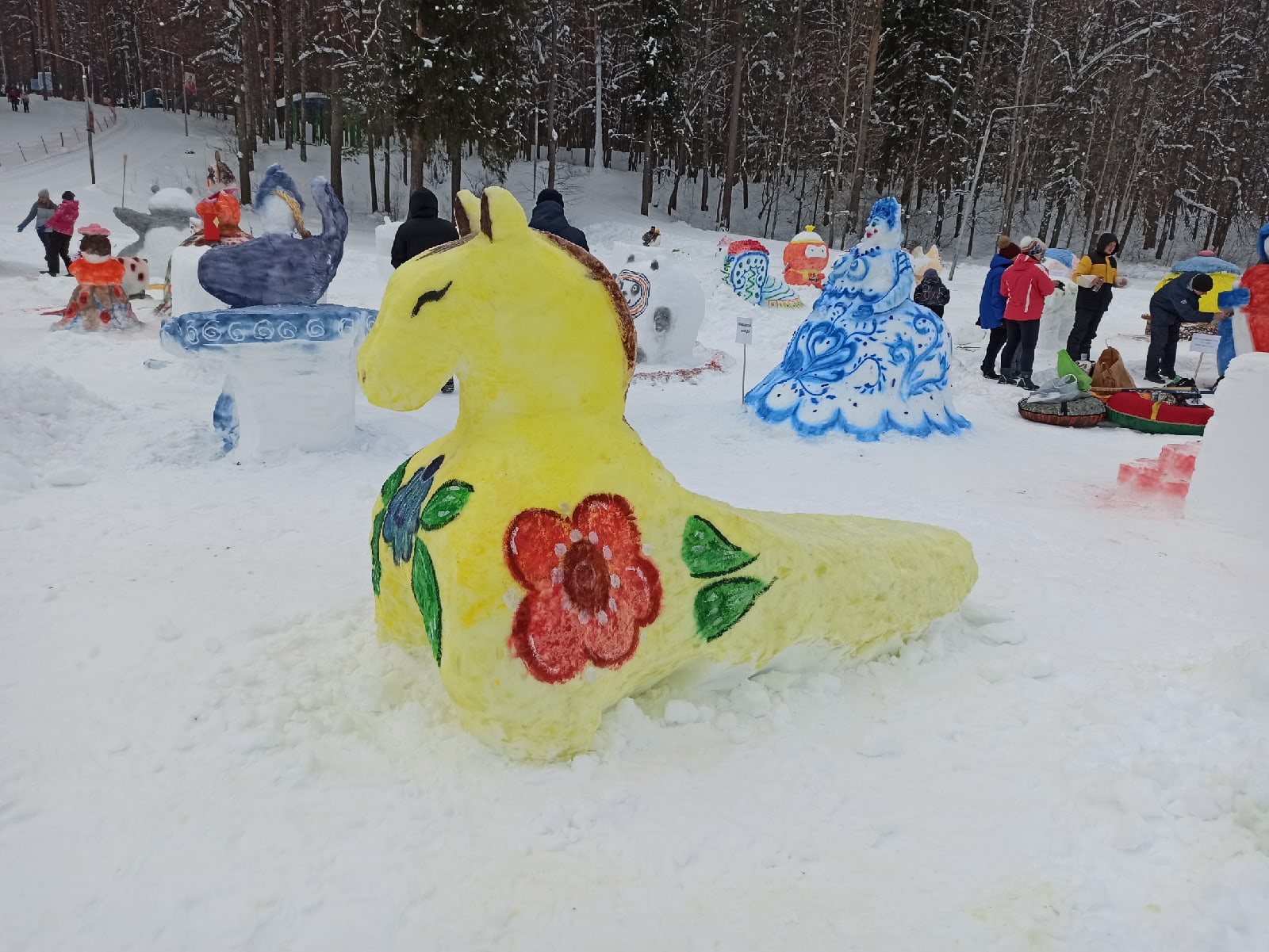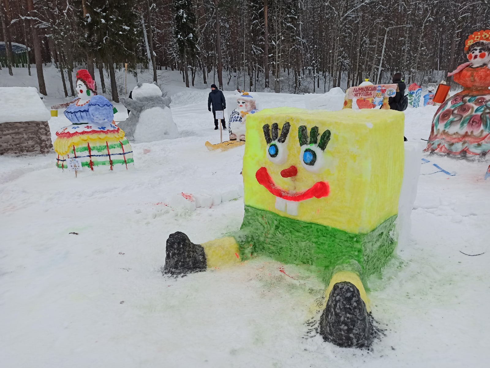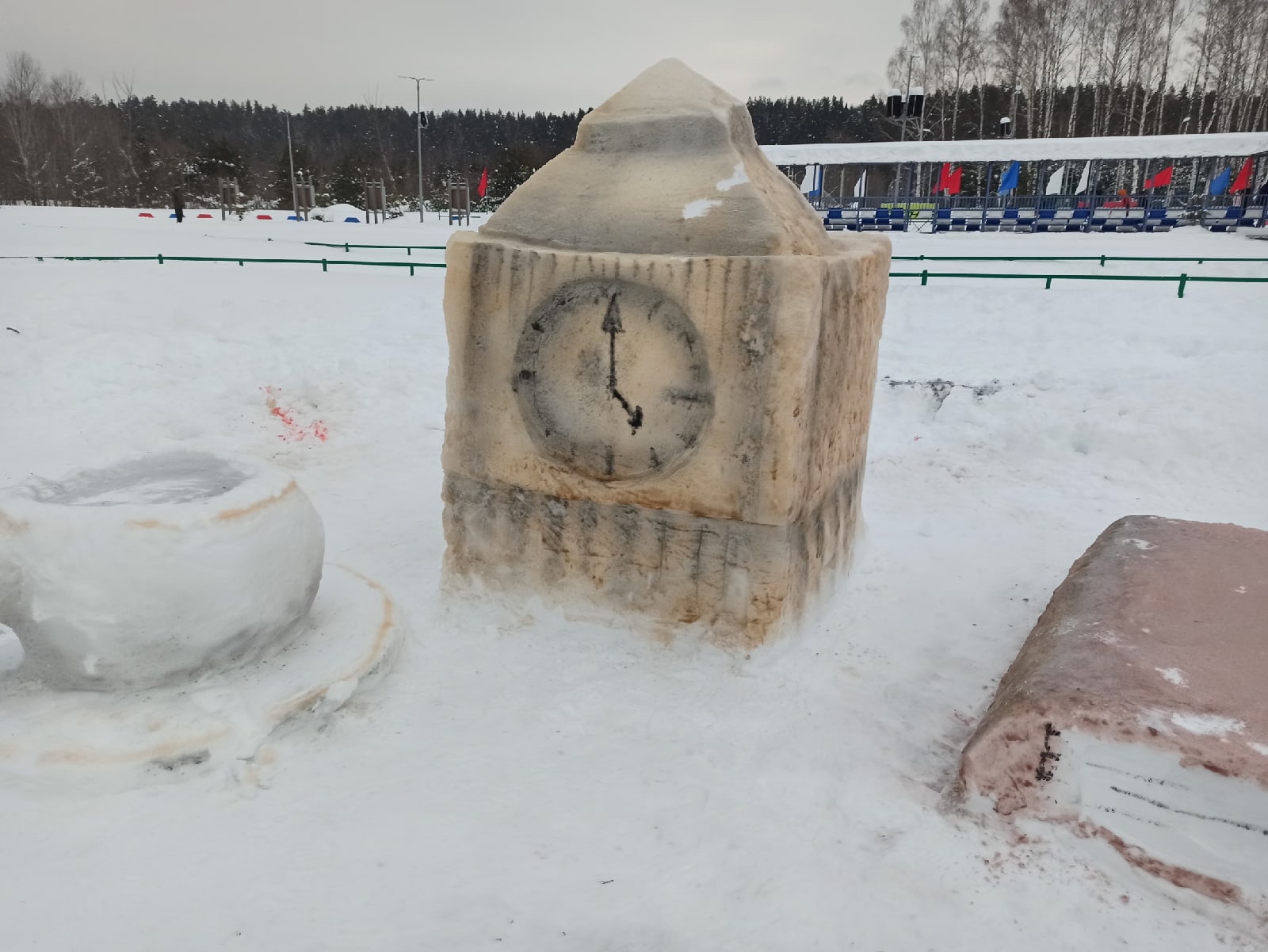 На лыжной базе уже готовы все снежные фигуры, участвующие в конкурсе на «Дне снега». Итоги подведут в ближайшее время. А мы рекомендуем обратить внимание на работу Александра Савского. Скульптурный Серафим Саровский кормит скульптурного медведя. Как полагается преподобному — с руки. Значит талантливый саровчанин может не только жутких Пенивайзов лепить.