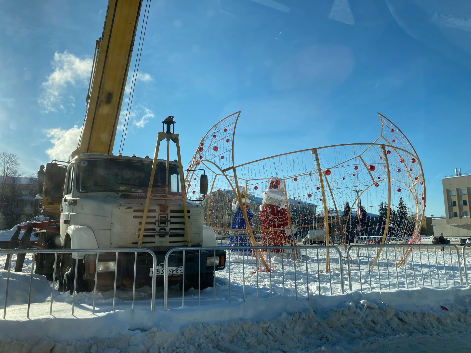 На площади убирают новогодние украшения (фото)