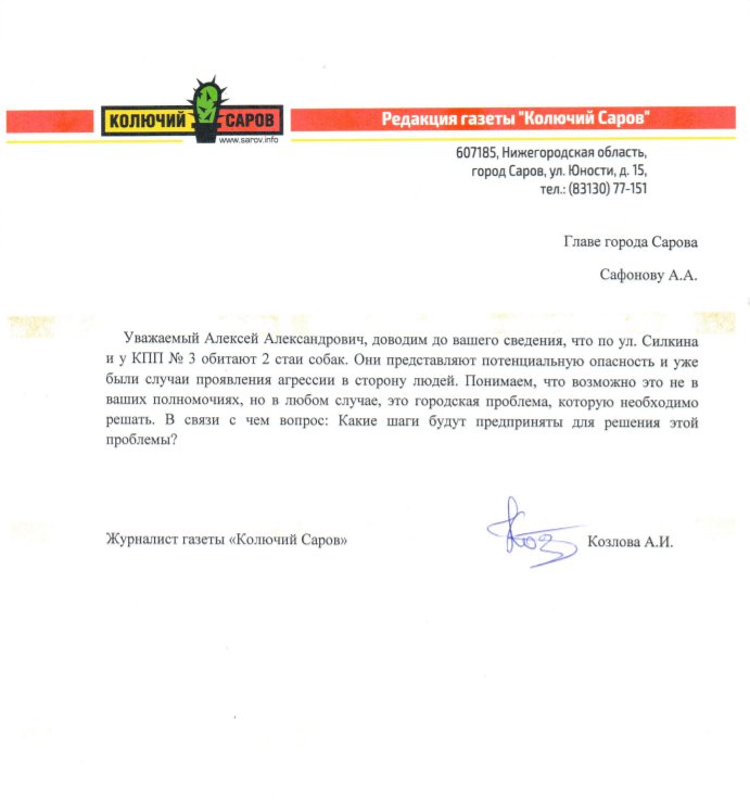 Пришёл ответ от администрации касательно стаи бездомных собак