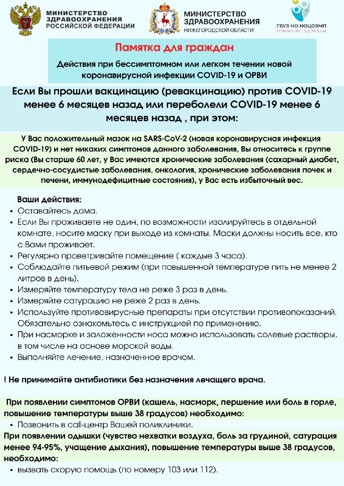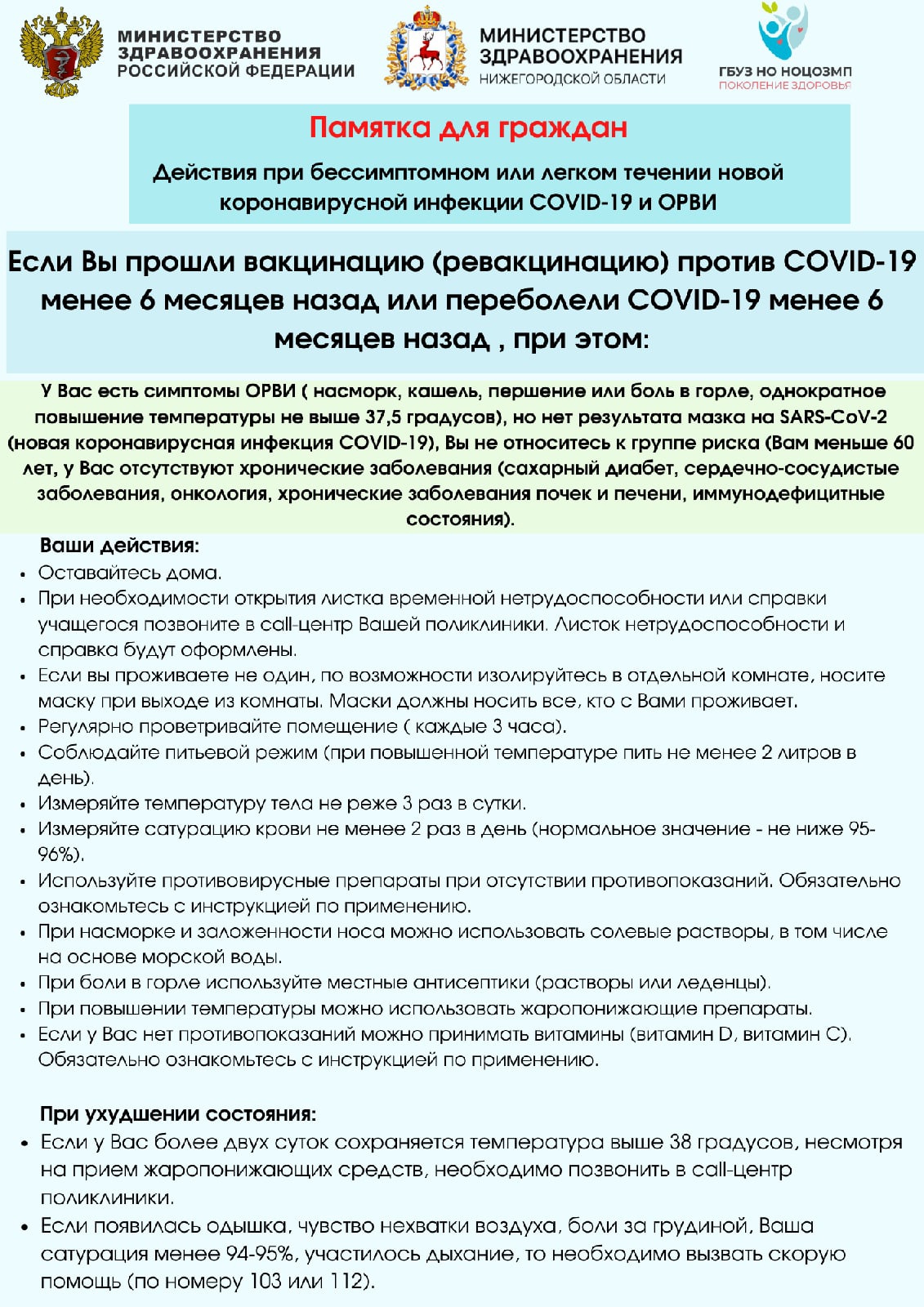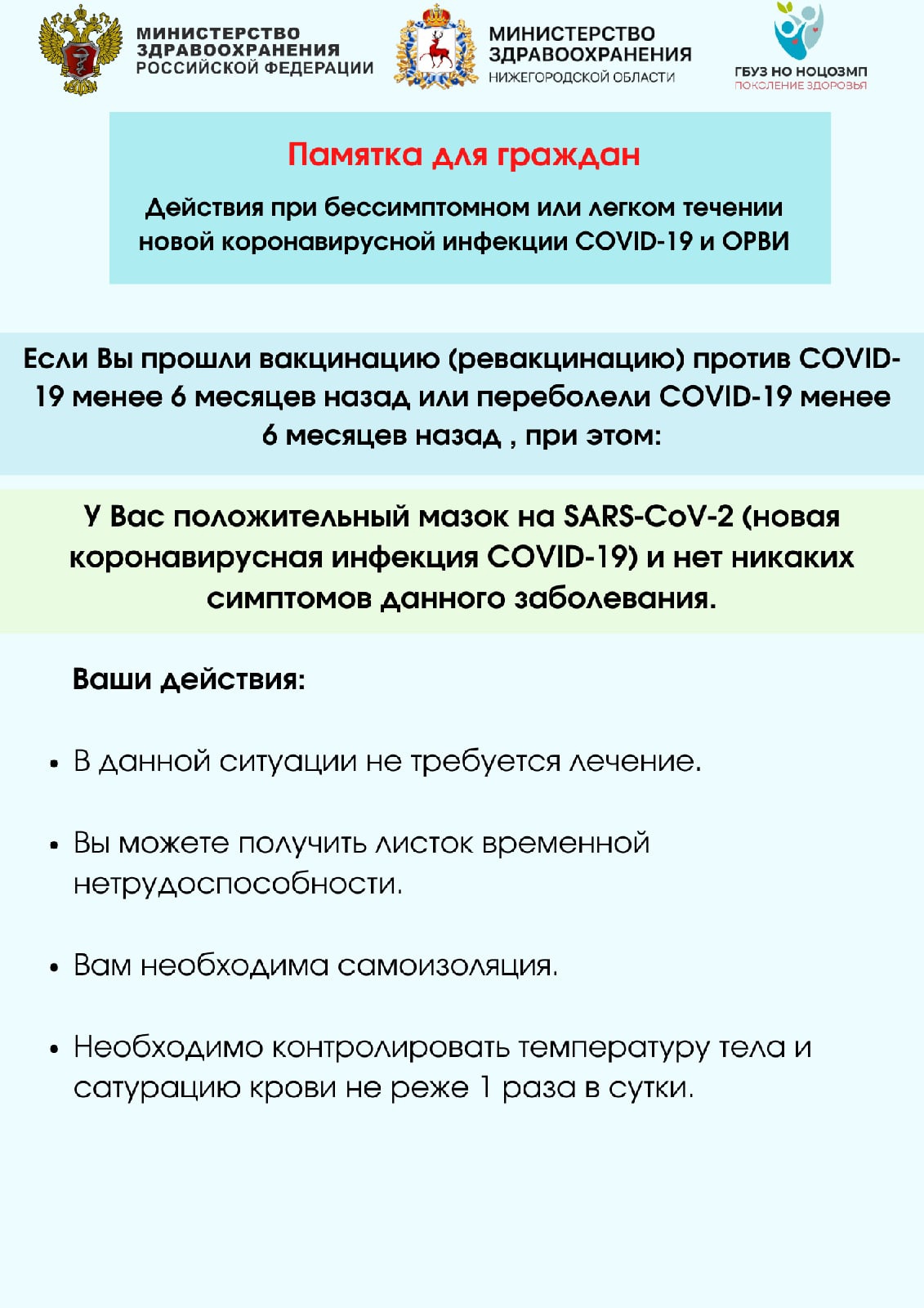 ФМБА подготовило памятку для тех, кто болеет ковидом в лёгкой форме