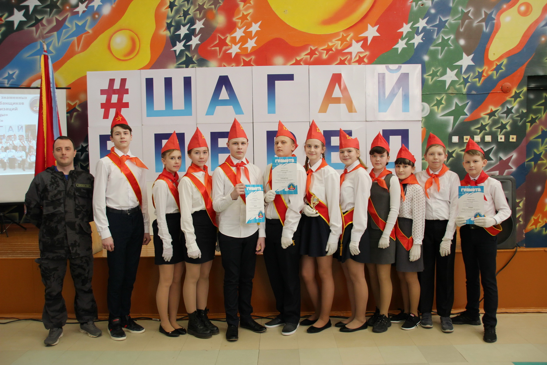 Ежегодный смотр-конкурс «Бей, барабан!» во Дворце детского творчества — это запоминающийся праздник саровской пионерии: орлятский круг, парадная форма, галстуки, марши, волнение зрителей и сияющие глаза победителей. 17 марта свое мастерство показали 18 знаменных групп из всех пионерских и детских организаций школ города. Также выступили 7 новичков и 7 опытных барабанщиков из 7 дружин.