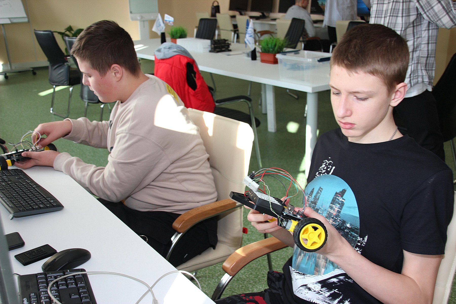 Советчиками и «скорой помощью» для школьников были преподаватель Андрей Додин, четверокурсники Александр Бодряшкин, Денис Плеханов и одиннадцатиклассник Даниил Кротов, который тоже отлично разбирается в программировании и управлении машинами на платформе Arduino.
