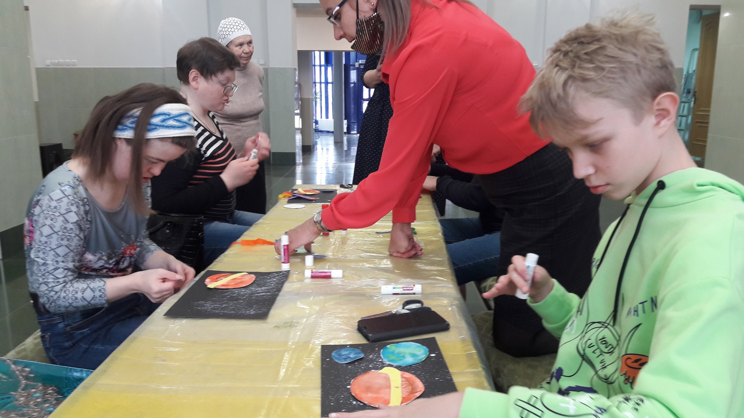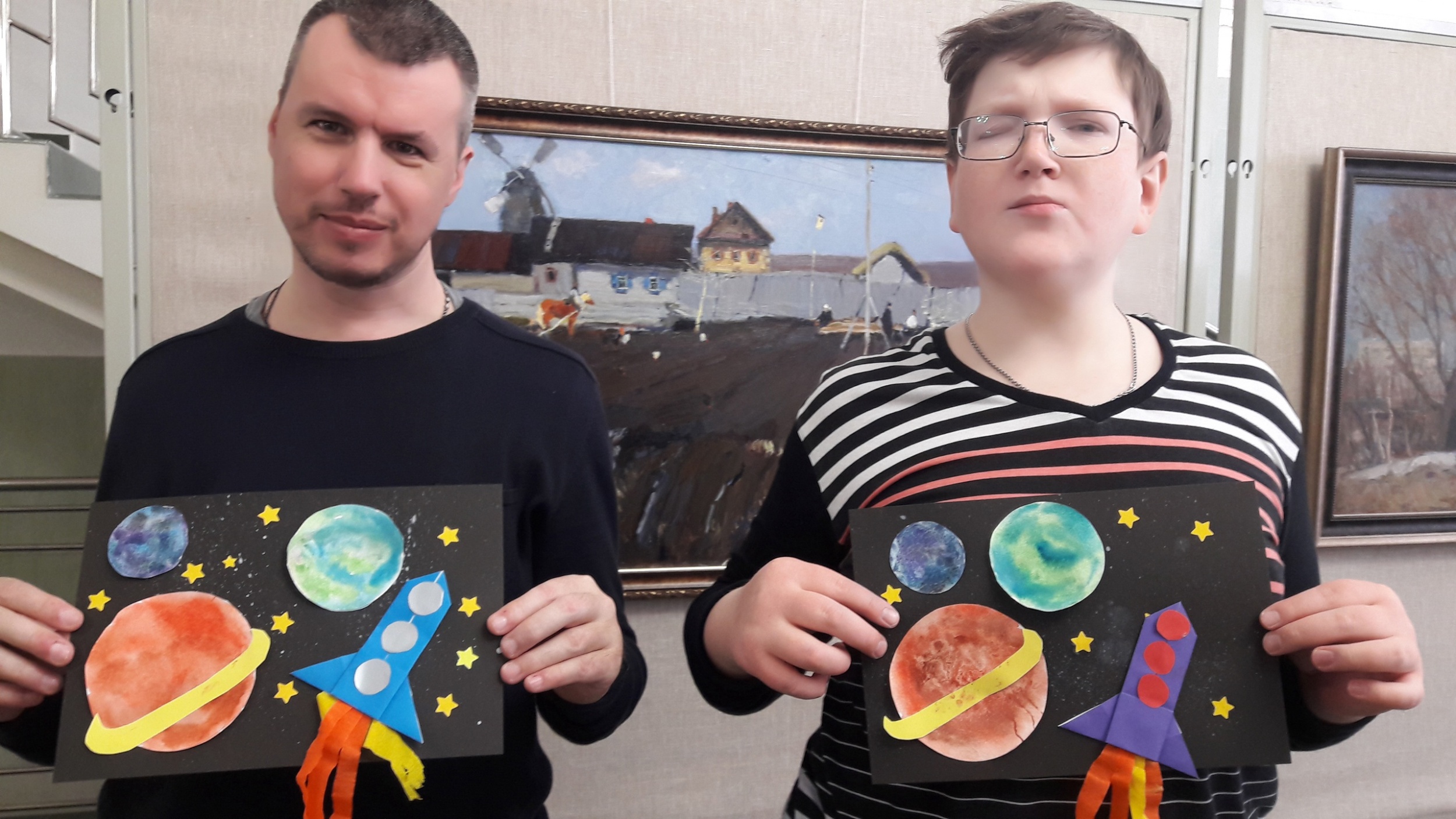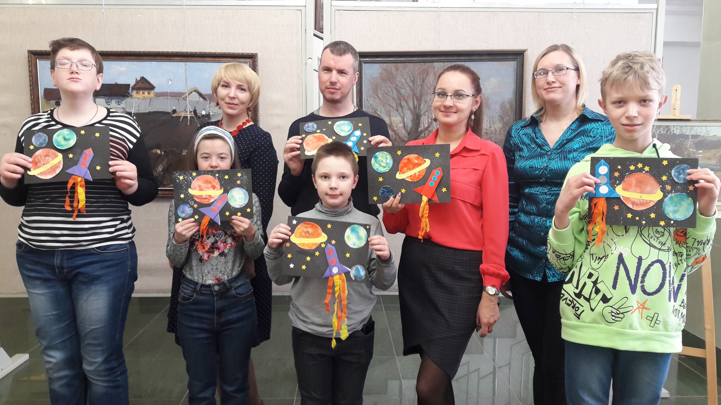 13 апреля ко Дню космонавтики представители Художественной галереи вновь творчески встретились с Клубом общения «Лотос». Все вместе они отправились в «Космическое путешествие», где в творческой мастерской участники клуба своими руками создали праздничное декоративное панно «Космос рядом» в смешанной технике.