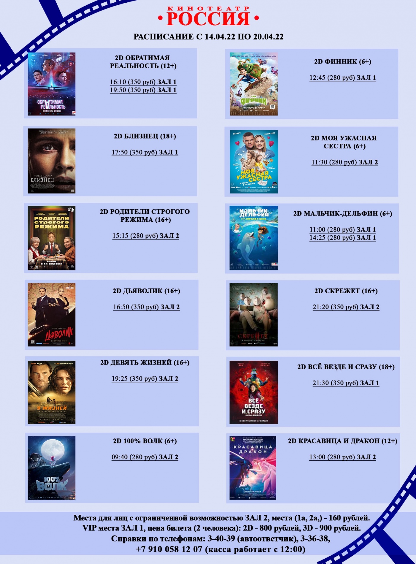 Расписание с 14 по 20 апреля