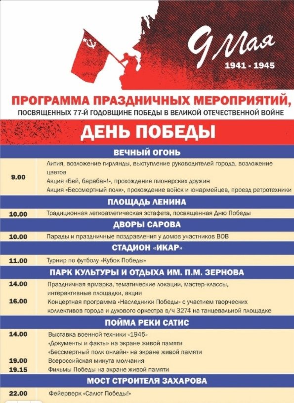 Программа праздничных мероприятий на 9 мая