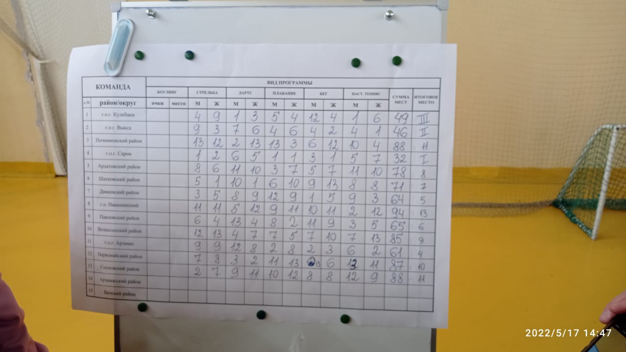 Сборная команда от г. Саров стала победительницей зональных соревнований Спартакиады пенсионеров России, прошедшей 17 мая в г. Кулебаки МБО «ФОК «Темп». В соревнованиях приняли участие 13 команд из городских и сельских муниципалитетов юго-западной части Нижегородской области.