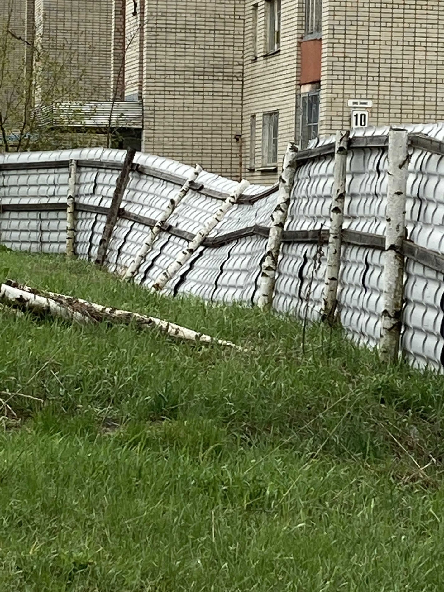 Этот забор уже несколько лет «украшает», а по сути уродует дворовую территорию. Теперь он ещё и в аварийном состоянии. Вместо того, чтобы снести его, жителям рекомендуют не подходить к нему, не парковать свои машины. Тем самым лишая их возможности использовать дворовую территорию.