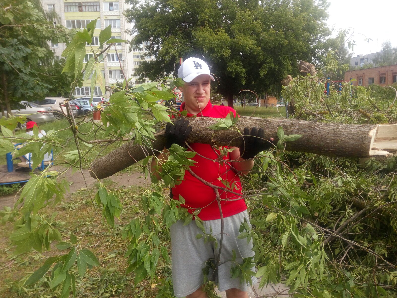 Сотрудники ЖКХ и волонтеры устраняют последствия урагана на улице Некрасова