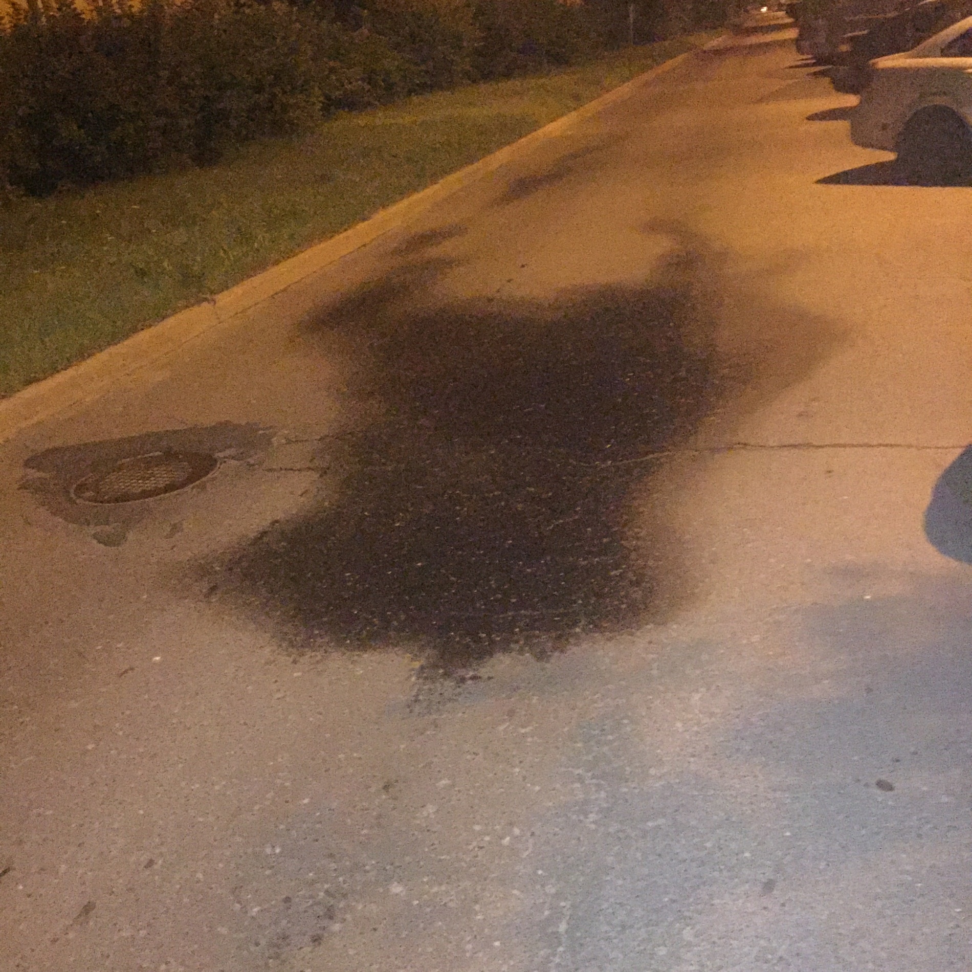 В сухую погоду, особенно заметно, что асфальт начинает мокнуть и образуется небольшая лужа. Такое наблюдается уже не первую неделю, с каждым днём пятно становится ещё больше и начинает вызвать опасения. Днем на солнце лужа высыхает, но с закатом всё повторяется. Хотелось бы понять в чем причина, возможно там проблема канализацией или трубами.