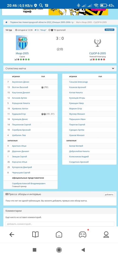 Прошло Первенство Нижегородской области по футболу, юниоры