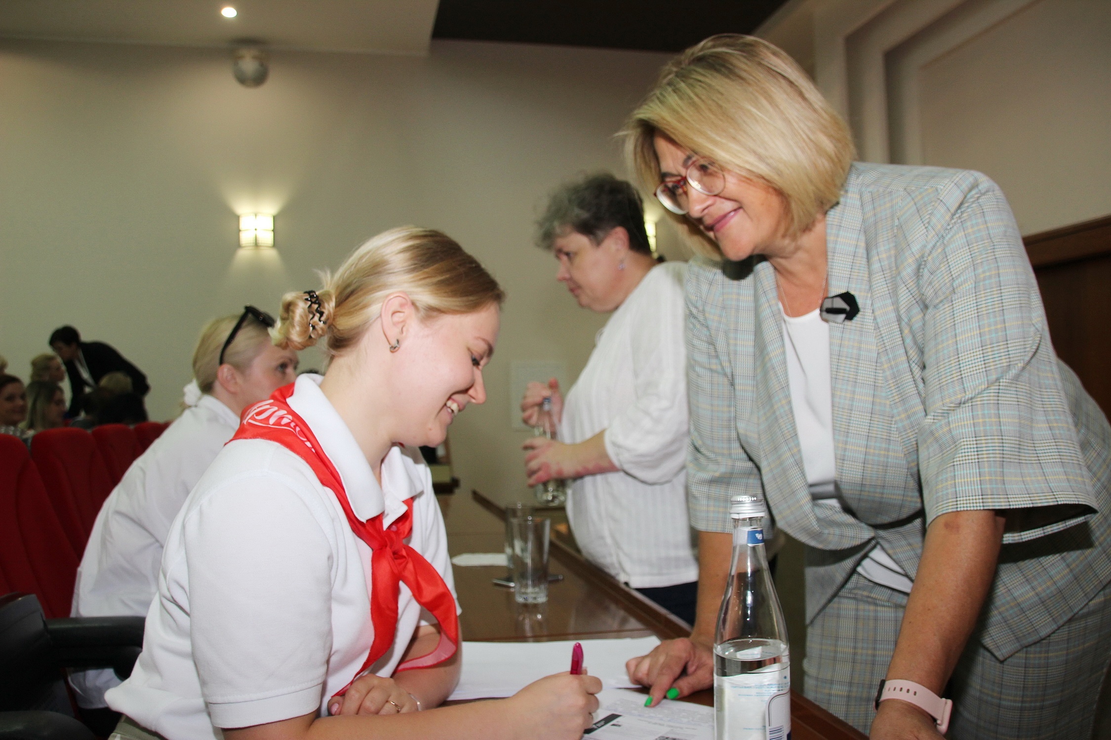 Традиционно накануне нового учебного года проводятся совещания руководящих и педагогических работников школ, детских садов и учреждений дополнительного образования. 24 августа в зале городской администрации состоялось пленарное заседание. После приветственного слова главы города Алексея Сафонова и видеообращения министра просвещения РФ Сергея Кравцова выступила директор департамента образования Наталия Володько. Она подвела итоги минувшего учебного года и рассказала о вызовах, нововведениях и трендах.