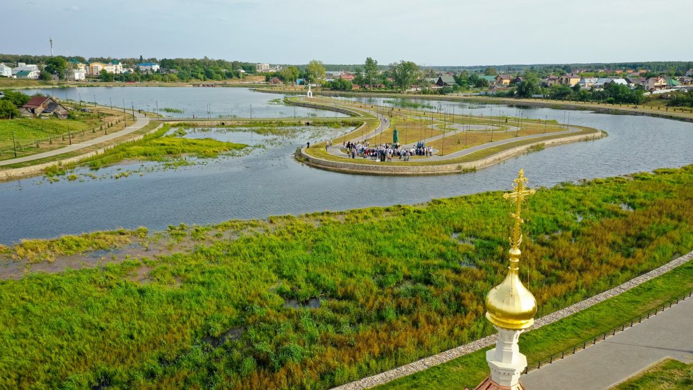 Монумент основателю Свято-Троицкого Серафимо-Дивеевского женского монастыря стоит посреди реки на насыпном острове, к которому ведет построенная дамба. Работы по созданию памятника и реконструкции набережной проведены в рамках развития паломническо-туристического кластера «Арзамас — Дивеево — Саров».
