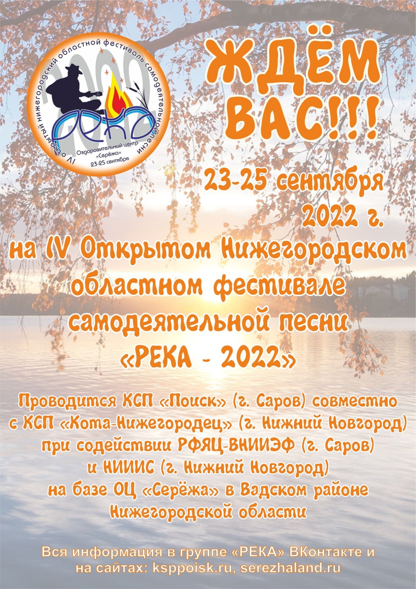 23−25 сентября на базе ДОЛ ОЦ «Серёжа», что находится примерно в пяти километрах от села Крутой Майдан Вадского р-на Нижегородской области, пройдёт IV Открытый Нижегородский областной фестиваль самодеятельной песни «РЕКА — 2022».