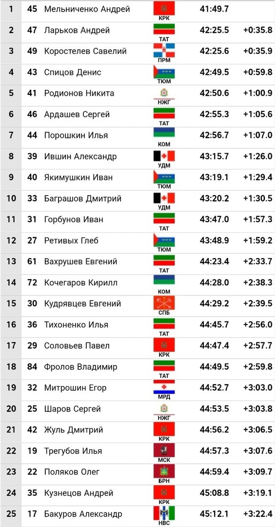 Никита Родионов стал 5-м. а Шаров Сергей — 21-м в мужской гонке на 20 км!