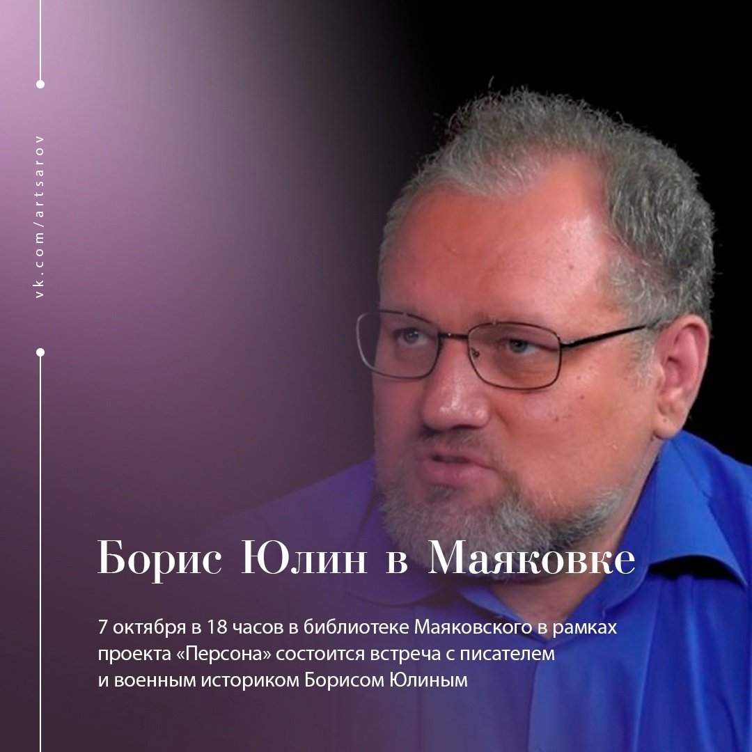Сегодня в 18 часов в библиотеке Маяковского в рамках проекта «Персона» состоится встреча с писателем и военным историком Борисом Юлиным