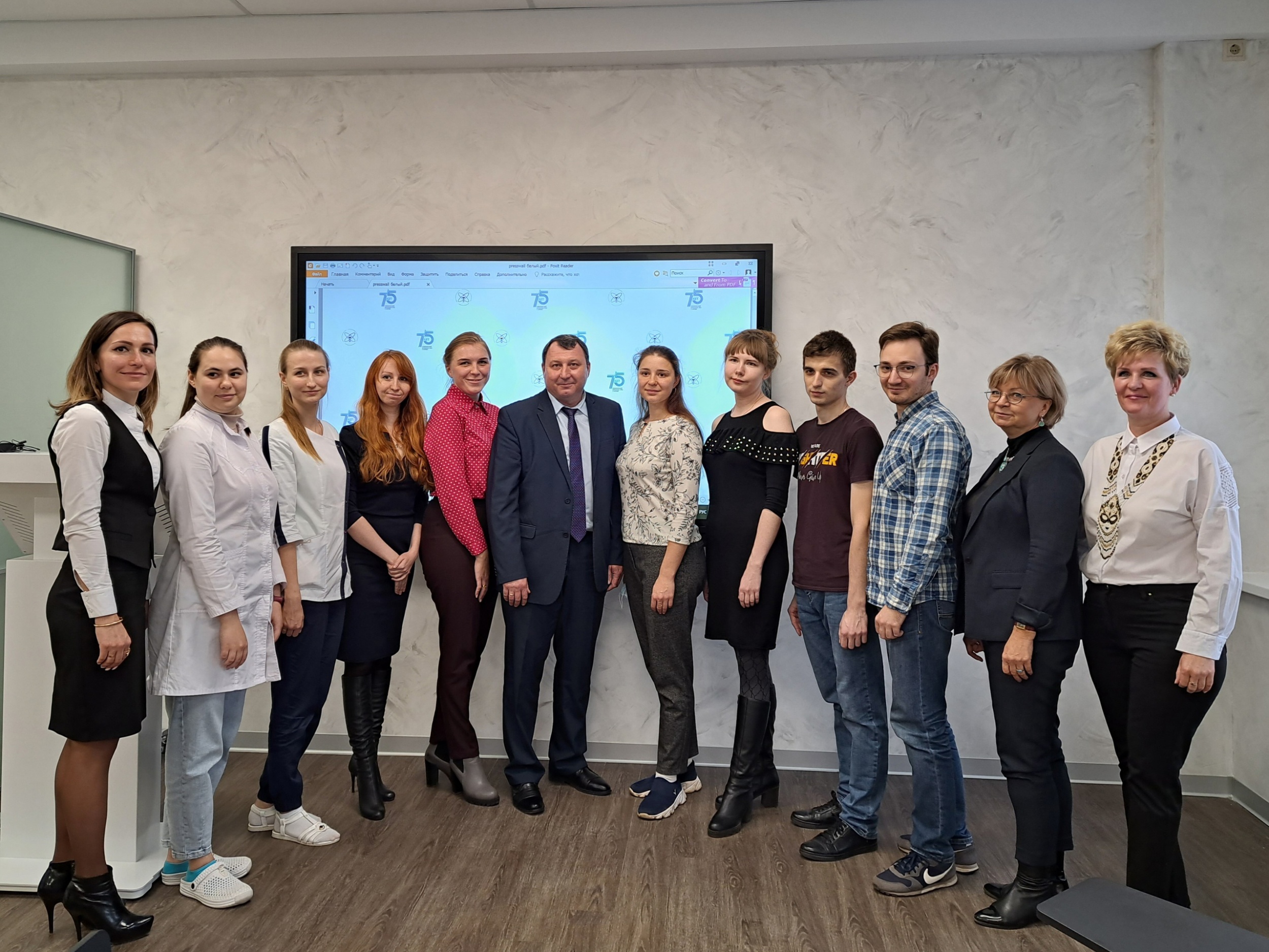 Традиционная встреча главного врача КБ № 50 с молодыми специалистами состоялась в новом интерактивном классе поликлиники № 2. В этом году коллектив больницы пополнили 12 врачей, 9 из них — после окончания специалитета и ординатуры.