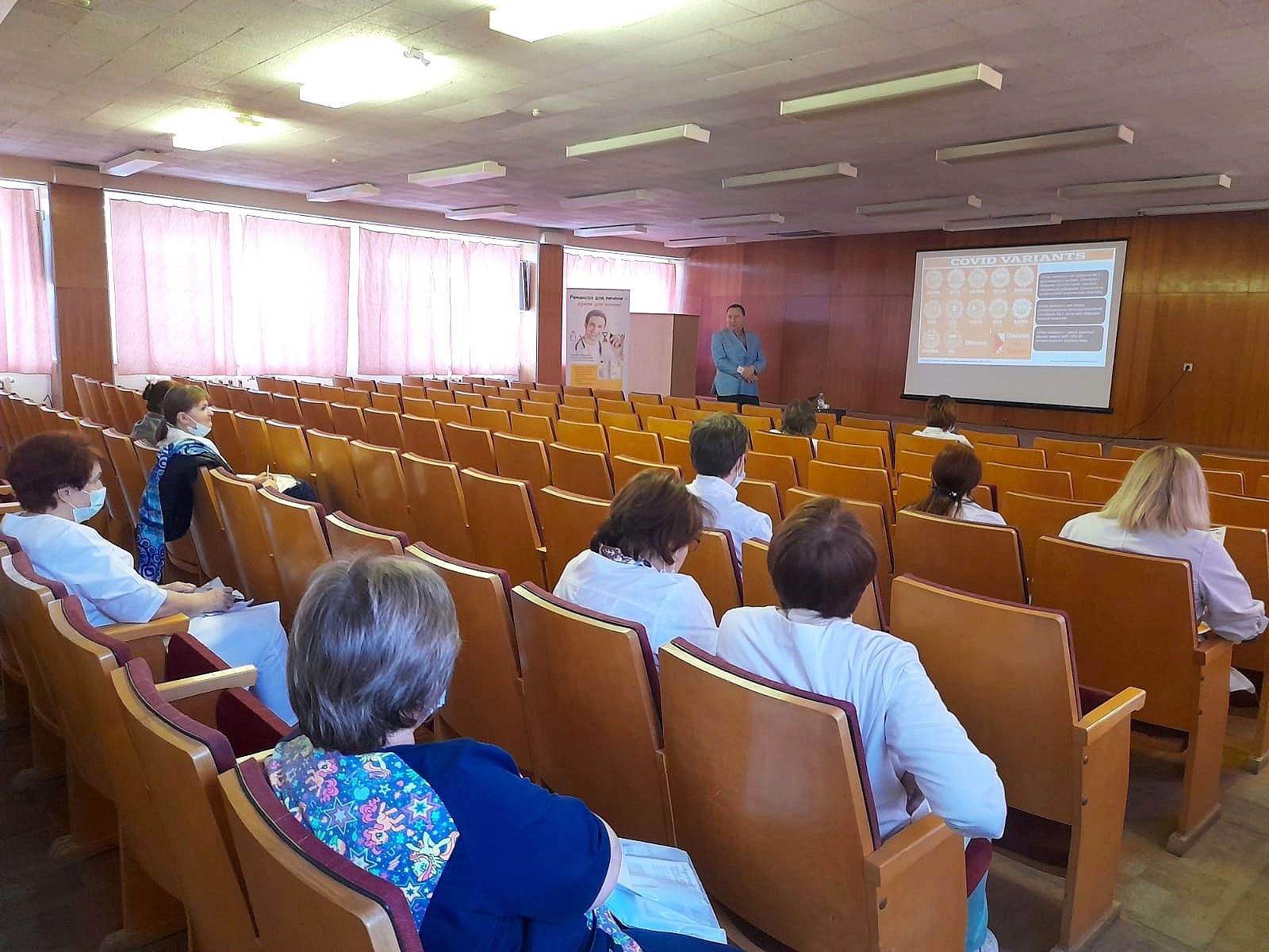 В целях совершенствования знаний в области лечения COVID-19 и его осложнений врачи КБ № 50 ФМБА России посетили лекцию кандидата медицинских наук, доцента кафедры терапии ФГБОУ ВО «ПИМУ» Минздрава РФ Юрия Белькина.