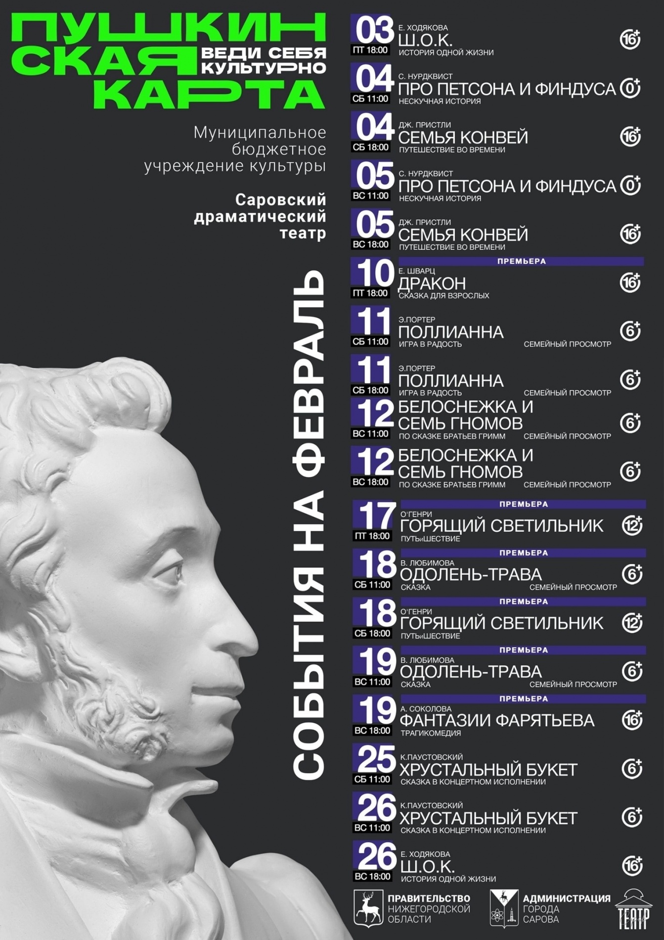 Опубликованы афиши Саровского драмтеатра и «Кузнечика» на февраль