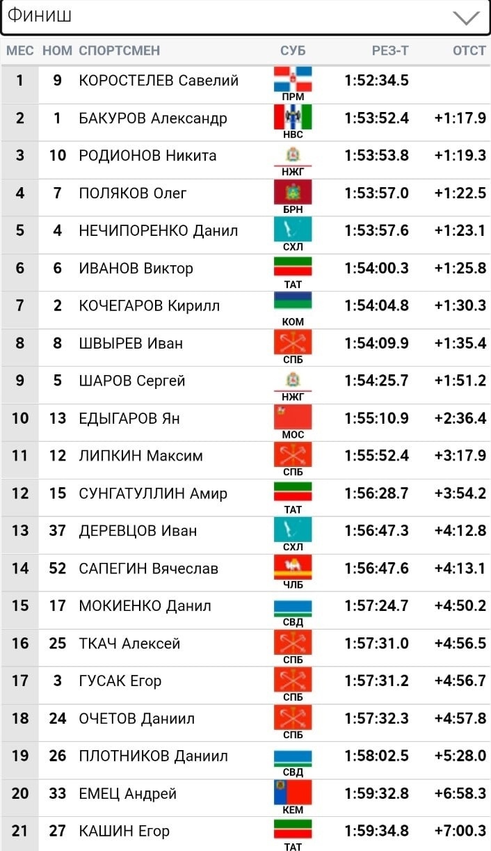 Победу одержал спортсмен из Пермского края. Вторым стал представитель Новосибирской области.