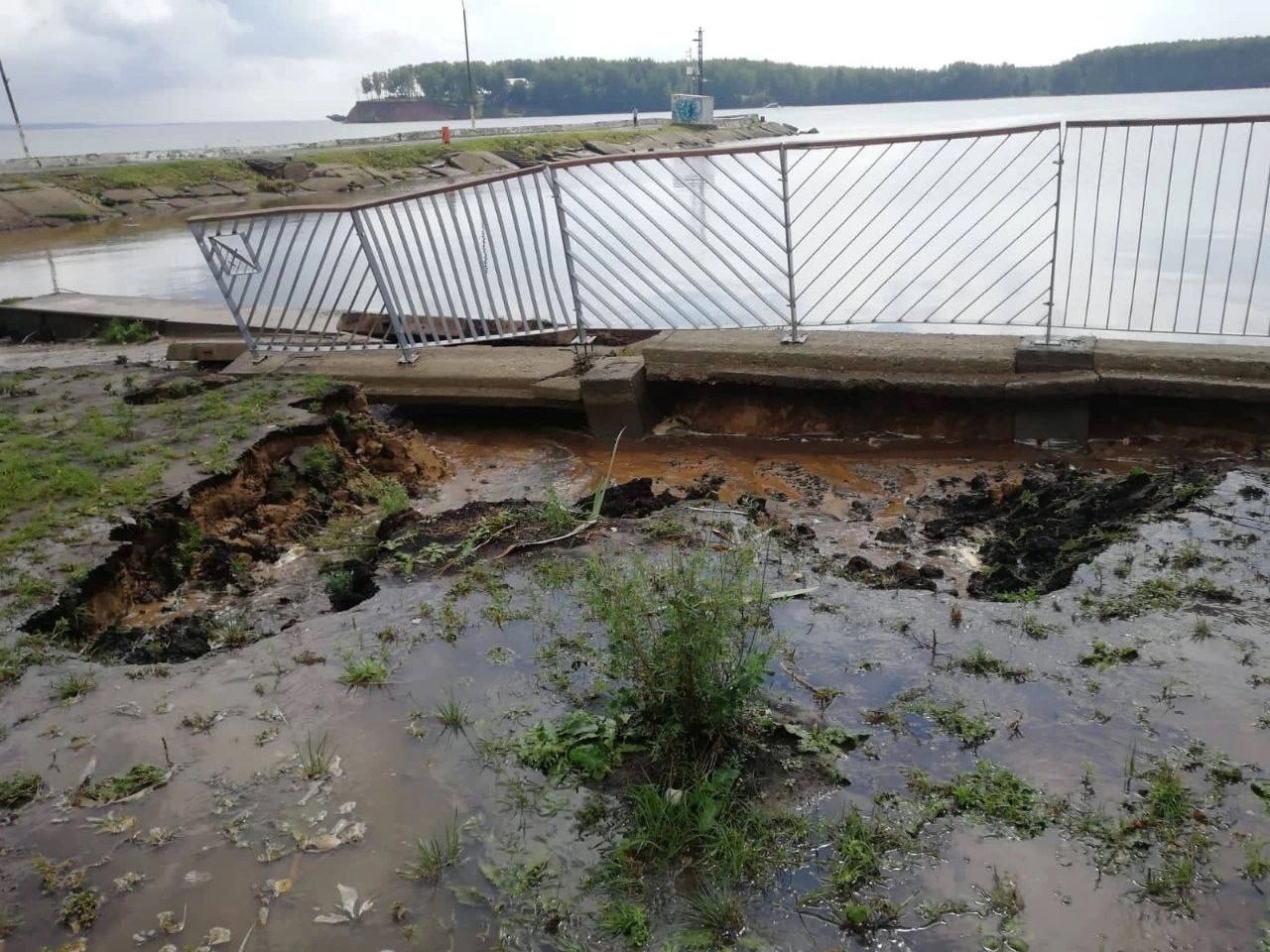 В Чкаловске набережную, благоустроенную всего 1,5 месяца назад (в середине июня), размыло сильными ливнями.